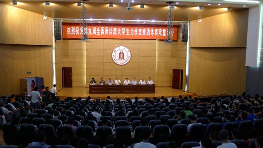 团体赛开幕式于2013年8月16日上午在四川大学举行,由四川大学副校长晏世经教授主持。第九届全国周培源大学生力学竞赛领导小组副组长、组委会主任委员、力学类专业教学指导委员会主任委员、四川大学校长谢和平院士,国家自然科学基金委员会主任、中国力学学会副理事长杨卫院士,中国力学学会副理事长、清华大学钱学森力学创新人才班首席专家郑泉水教授,第九届全国周培源大学生力学竞赛仲裁委员会委员梅凤翔教授,第九届全国周培源大学生力学竞赛组委会主任委员、仲裁委员会委员李俊峰教授,中国力学学会教育工作委员会副主任马宏伟教授,第九届全国周培源大学生力学竞赛组委会秘书长刘俊丽女士出席了开幕式。