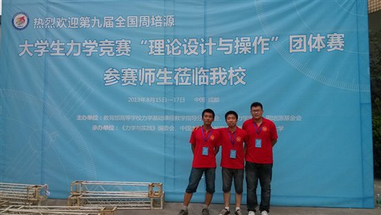 2013年8月15-18日,华人策略研究手机版2010级三名同学罗琪、李康、马利超代表学校参加第九届全国周培源大学生力学竞赛“理论设计与操作”团体赛并取得优胜奖。